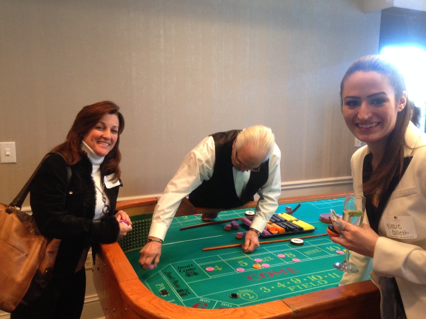 After we finished “oooh-ing” and “ahh-ing” at the gorgeous interiors, we dipped into one of the conference rooms for lunch and a game of craps. Yes, did we mention there were casino games strewn around the first two floors during the party? Lisa and Kinzie killed it at the craps table, bringing in over $100,000 each. Too bad it was just in vouchers – otherwise we’d be halfway to the Bahamas right now!