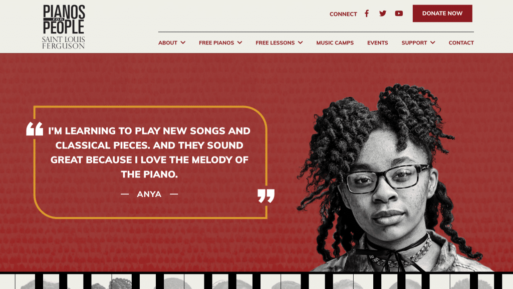Pianos for People, a nonprofit organization based in St. Louis, submitted its new website into the awards and won a gold award in the Nonprofit Website category. RobMark launched Pianos for People’s redesigned website in October 2018. After months of planning, designing, and programming, we created a website that was full of character, just like the organization itself. Explore the new Pianos for People website here.