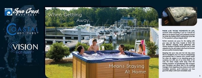 Robertson & Markowitz has just recently completed a product brochure for Spa Crest Manufacturing that will be used throughout the United States and United Kingdom. The brochure provides information about their Spa Crest, Vision and Coastal Hot Tubs. Our stellar graphic designer, Chaz Cruz, worked extremely hard on this, and we think he did an incredible job! Check it out below!
