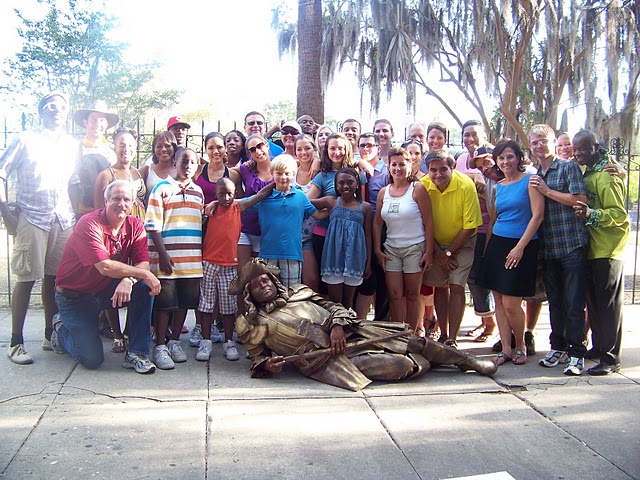 We are very happy to report that the conga line around Savannah this past Saturday was a HUGE success!! Thanks to all of our extras, crew members and random people off the streets who were willing to dance and have a good time with us! The finished product is sure to be amazing, and we had so much fun making it! Below are a couple teaser pictures from the shoot. We’ll be sure to post the video when it’s complete.